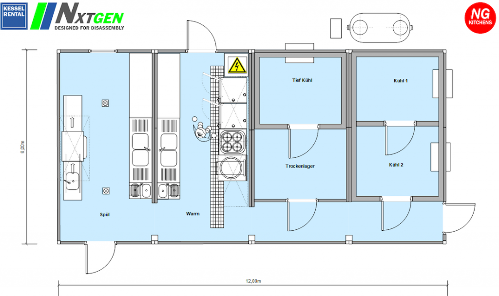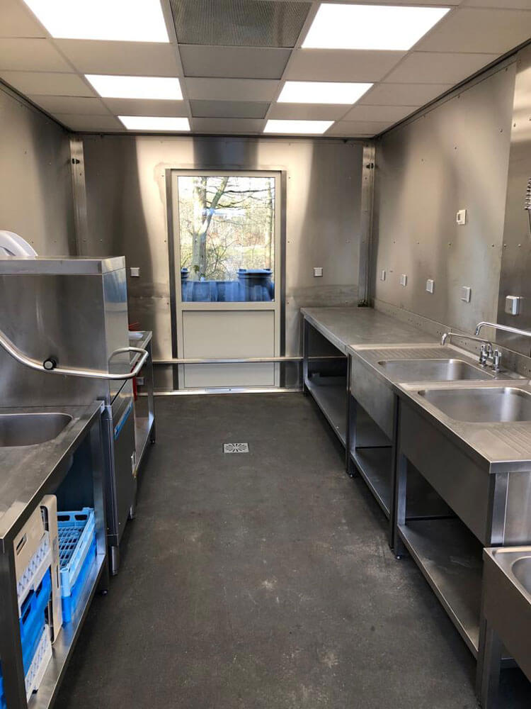 Op vraag van een jeugdherberg in Bayreuth/Duitsland mochten wij een professionele, tijdelijke keuken installeren bestaande uit 4 NxtGen container units. Zij zorgen voor de behuizing van de warme keuken, de spoelkeuken en een aantal ruimtes voor koelen, vriezen en droge opslag. Daarnaast hebben we ook enkel uitgiftecounters geleverd voor het serveren van koude en warme gerechten. Het totale projekt zal voor 3 maand gehuurd worden tijdens de renovatie van hun bestaande keuken. Een briljante oplossing…